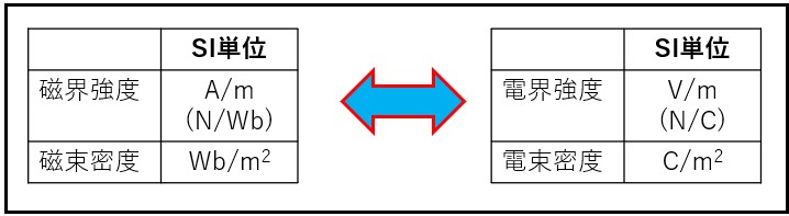 さらに電束密度の単位は、[C/m2]とSI単位系になっていますが、磁束密度はSI単位系にT(テスラ)を使うよりCGS単位系の[G](ガウス)を使うのが慣例のようです。