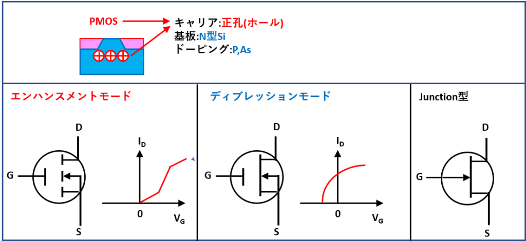 P型電極 : Pチャネル型MOS(PMOS)
