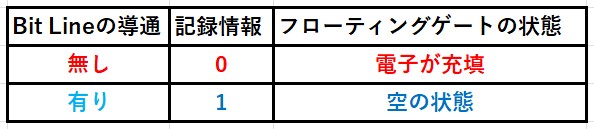この電流が「流れる」「流れない」で記憶状態を判断します。