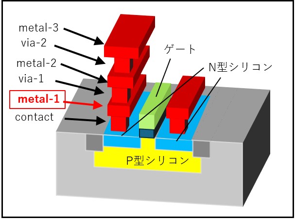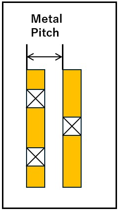 端的にいうと、図中のmetal-1と赤字で書いてある部分の配線幅になります。